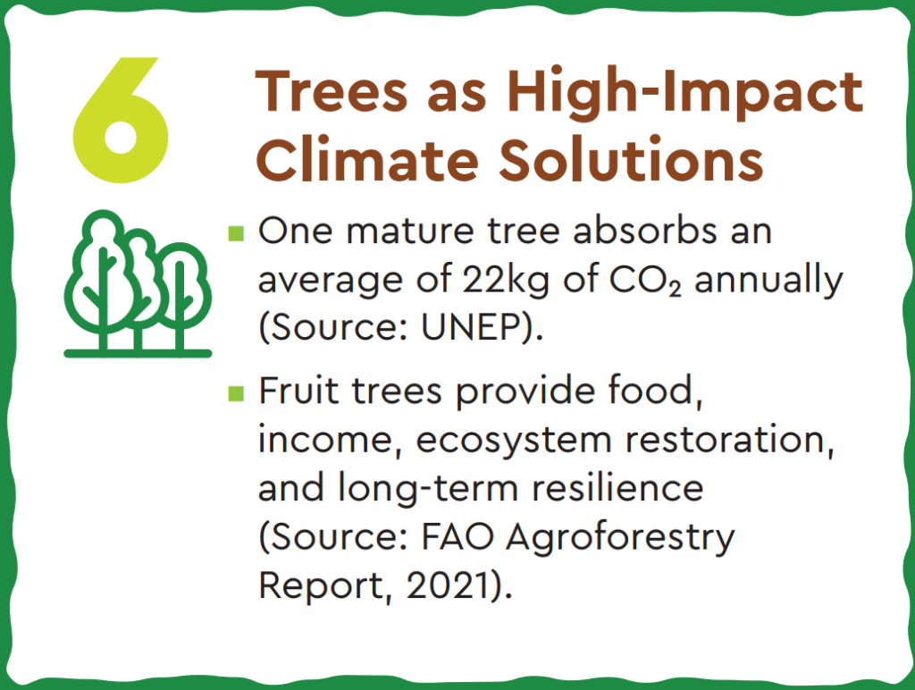 Number of schools engaged, seedlings planted and surviving, students and teaches trained, community members involved, and revenue generated.
